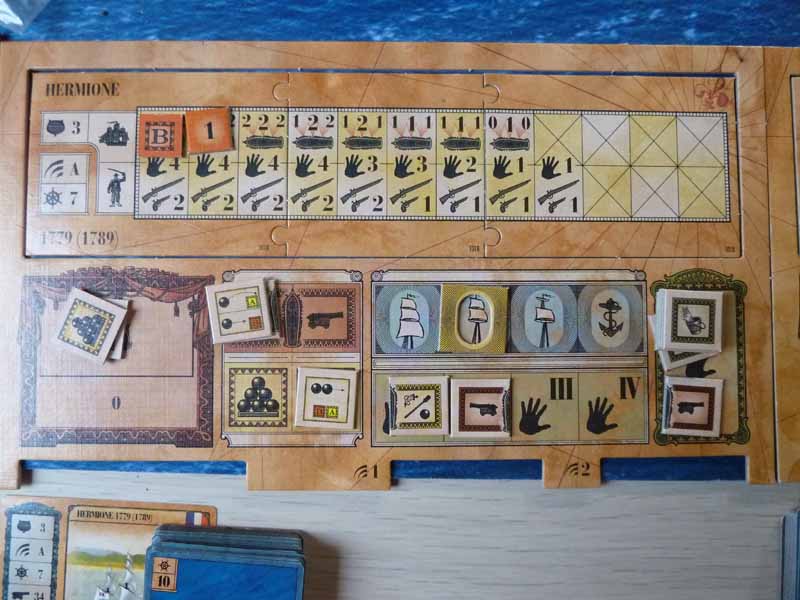 Hermione’s ship card shows how a well handled ship should look after a severe battle, we were hardly touched by the devastating broadsides thrown our way.