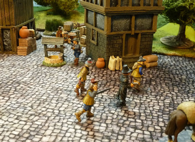 In the past I did a few games of witch finding and monster hunting with some older figures and that's what these are for, although there will be plenty of local raiding and fighting for them to undertake. I've just been re-watching the BBC's Three Musketeers and was immensely impressed with the scenery, in town and village, so there may well be games set in France as well, using the Musketeer ethos.